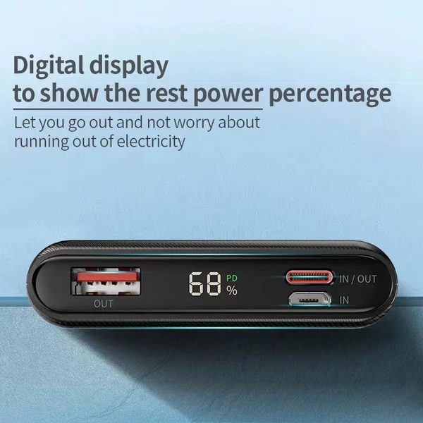 Type-C input&output:4.5V/5A,5V/4.5A,9V/2A,12V/1.5AMaterial:ABSProduct size:142*65*15.5mmNet weight:230g